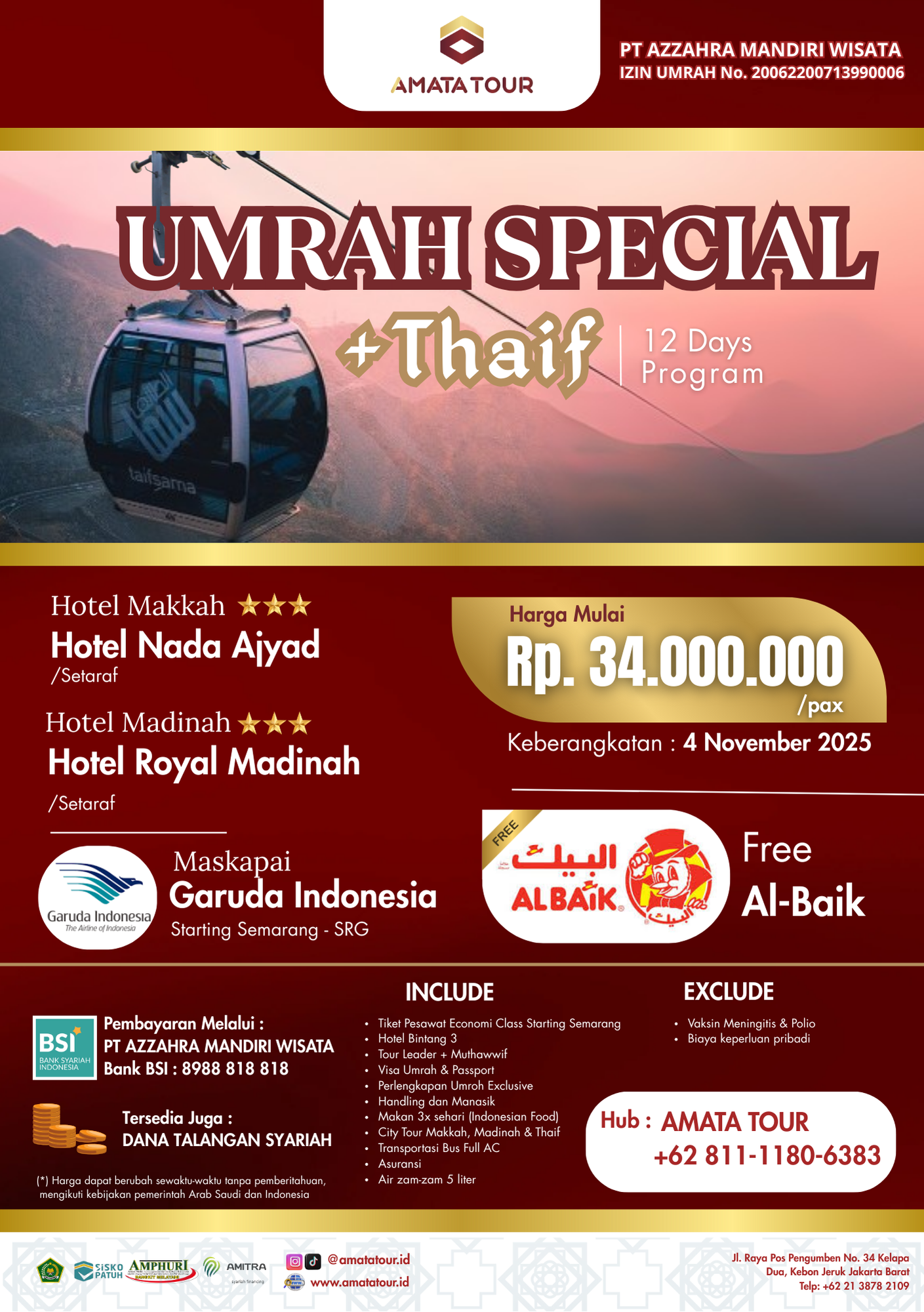 Untuk detail paket, itinerary dan info lainnya. Isi formulir dibawah ini, customer service Amata Tour akan menghubungi anda melalui WhatsApp.